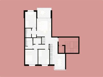 Ein neuer autofreier Innenhof entsteht – die Garagen werden zu Studiowohnungen umgenutzt. Gleichzeitig wird der Aussenraum neu gestaltet als Ort zum Spielen, Sitzen, Plaudern oder einfach zum Durchatmen. Grosszügige Grünflächen verbinden die Häuser und schaffen Raum, der von allen genutzt werden kann. Erdgeschosswohnungen erhalten einen privaten Aussenbereich mit bepflanztem Übergang zu den gemeinschaftlichen Zonen. Ob Balkon oder Terrasse – auch in den Obergeschossen wird der Aussenraum mitgedacht.